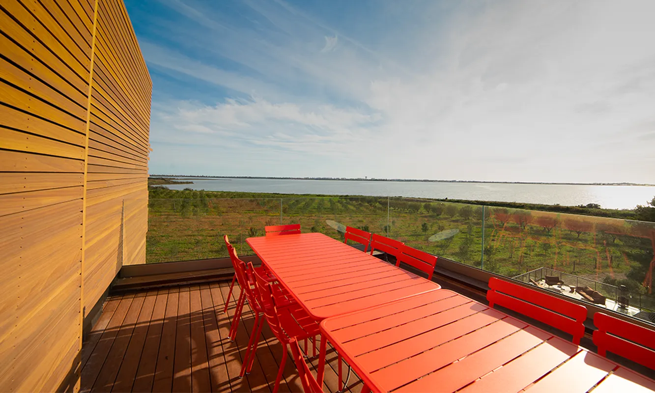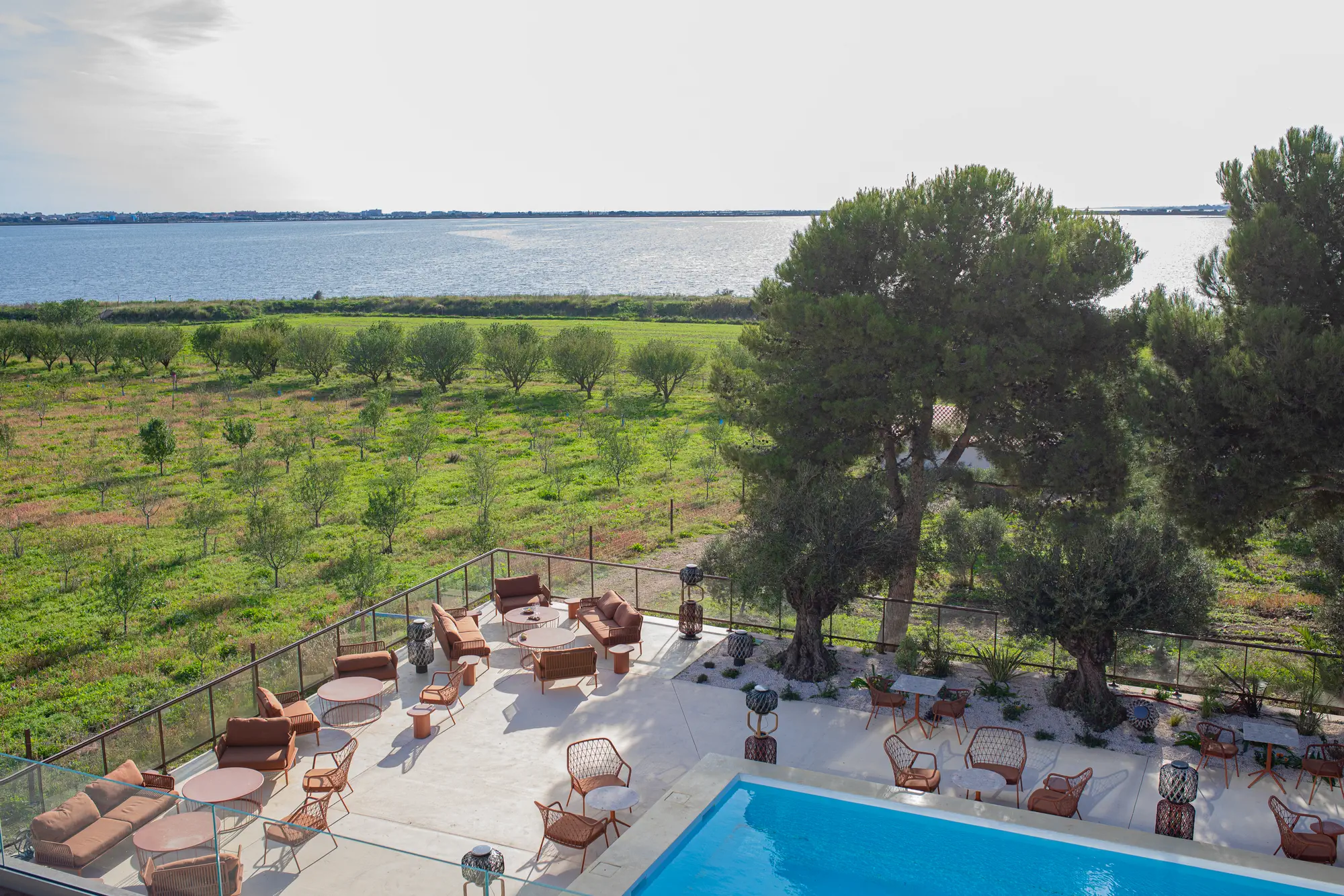 Écrin naturel à ciel ouvert, la Grande Terrasse est sans conteste le joyau de Solèna. Elle s’ouvre sur un panorama rare : l’étang scintillant, la pinède qui murmure avec le vent, les oliviers qui veillent en silence. À toute heure du jour, la lumière glisse sur le paysage et transforme cet espace en véritable scène vivante, toujours en mouvement.